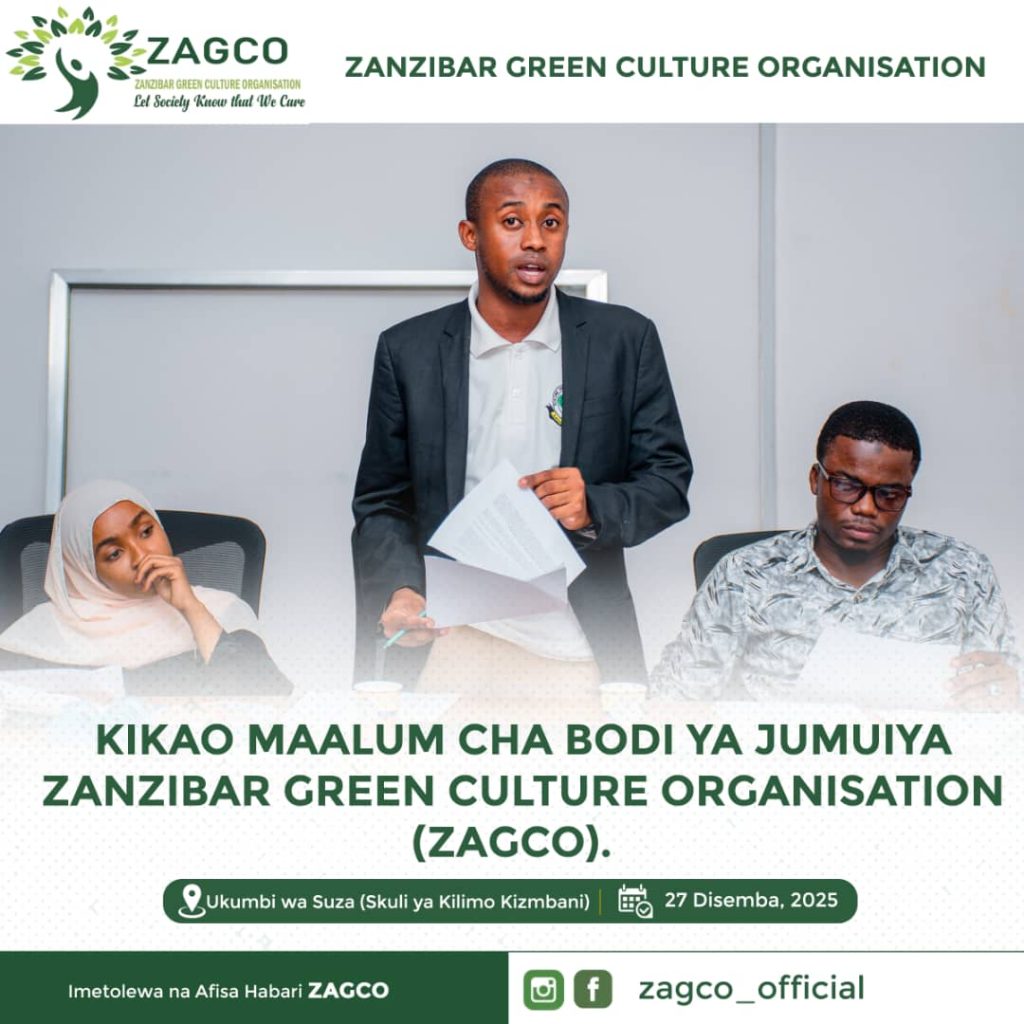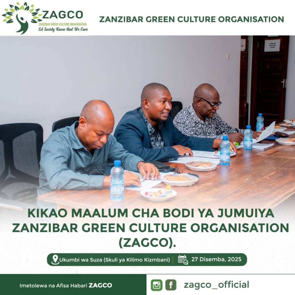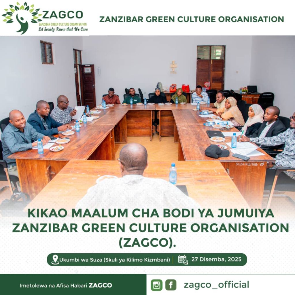 Kikao maalum cha bodi ya ZAGCO December 27, 2025 with no comment News and Events Kikao maalum cha bodi ya ZAGCO kilichofanyika katika ukumbi wa mikutano skuli ya kilimo Kizimbani. Kilichokuwa na lengo la kujadili mambo mbali mbali yanayohusiana na ZAGCO pamoja na utendaji kazi wake. Previous Post Taarifa ya mkutano Next Post Mkutano mkuu ZAGCO